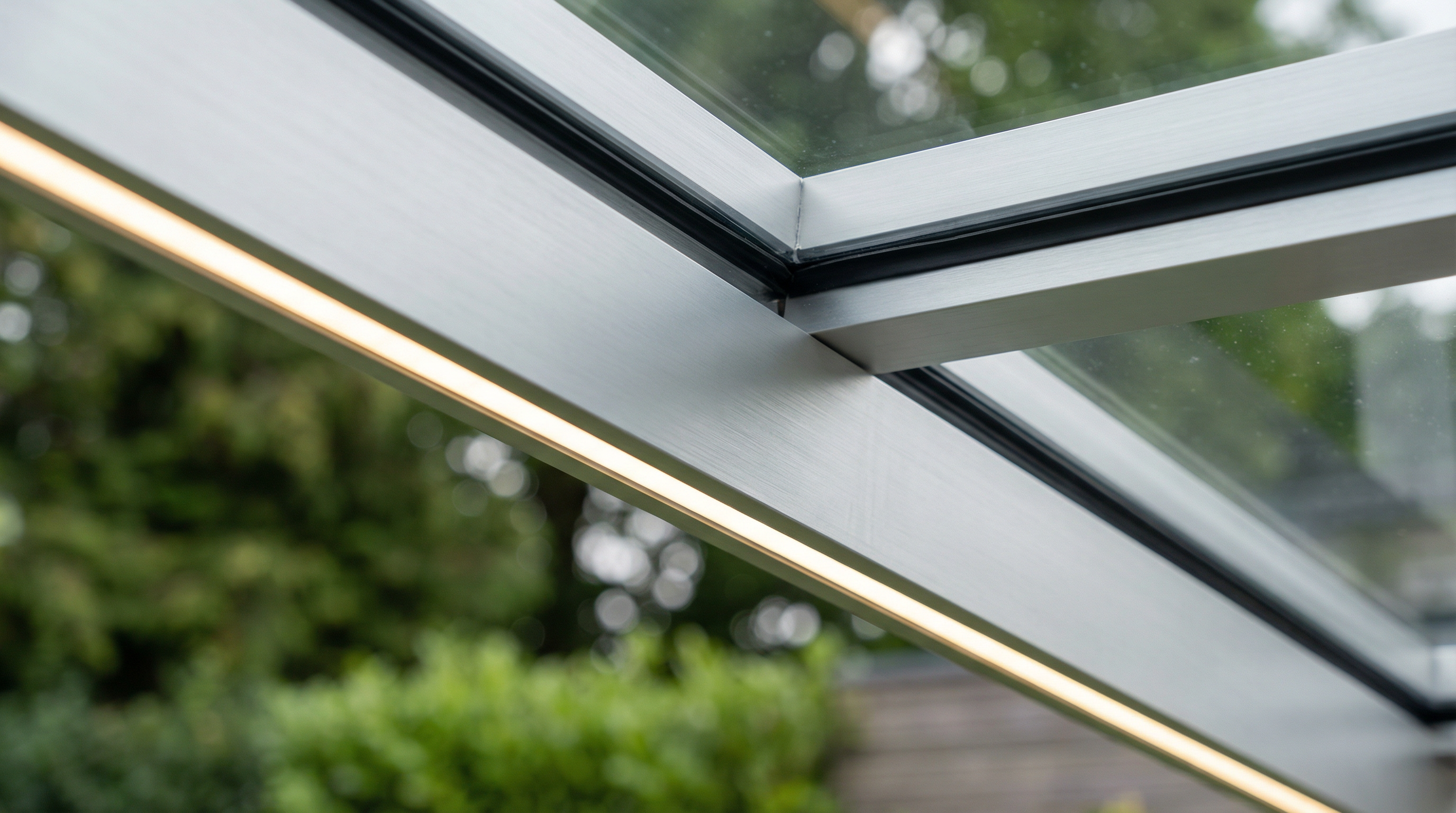 Unsere Terrassendächer bestehen aus pulverbeschichtetem Aluminium in Kombination mit Verbundsicherheitsglas (VSG) oder hochwertigem Polycarbonat. Diese Materialien sind ideal für das norddeutsche Klima: korrosionsbeständig, UV-stabil und praktisch wartungsfrei.